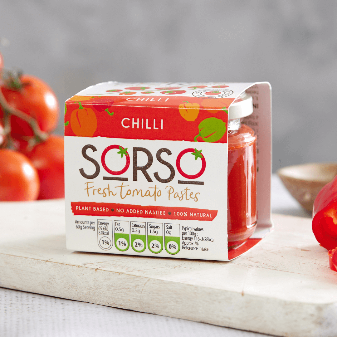 Elevate your other dishes by adding just the right amount of sweet red pepper for a dash of fabulous spice. SORSO’s vegan-friendly Extra Chilli Double Paste is for those who like to liven up their mealtimes. Preservative-free, this natural tomato paste is combined with more than a smidgen of feisty and crisp red pepper (with a hint of sweetness), just bursting with fragrance for extra fire.